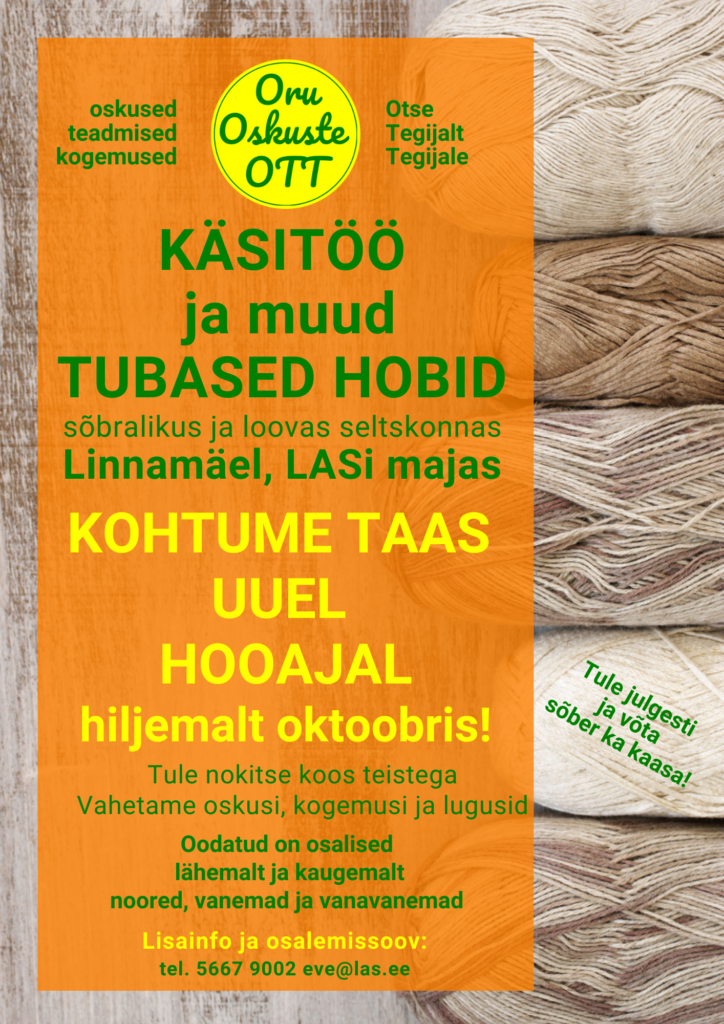 👉Oru OTTil on oma FB leht, kus OTTile REGISTREERUNUD kauplejad saavad meie ostjatele kauba kohta rohkem infot jagada. Ole kursis ja liitu! 👉Kui ka Sina soovid meiega kauplema tulla, anna hiljemalt OTTi-eelsel NELJAPÄEVAL märku 📧anuotisalu@gmail.com või 📧eve@las.ee, et saaksime ka Sinu kauba info reede hommikul ühises reklaamis avaldada.