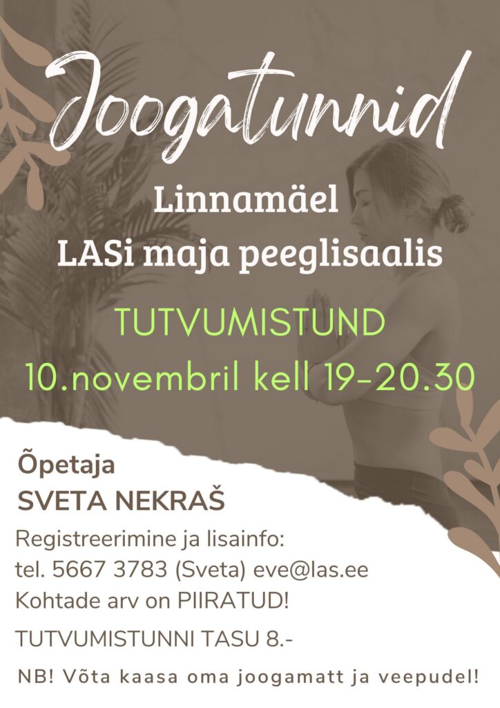 🍁10. novembril kell 19-20.30 Linnamäel, LASi maja peeglisaalis Šivananda jooga TUVUMISTUND. Loe lisa SIIT