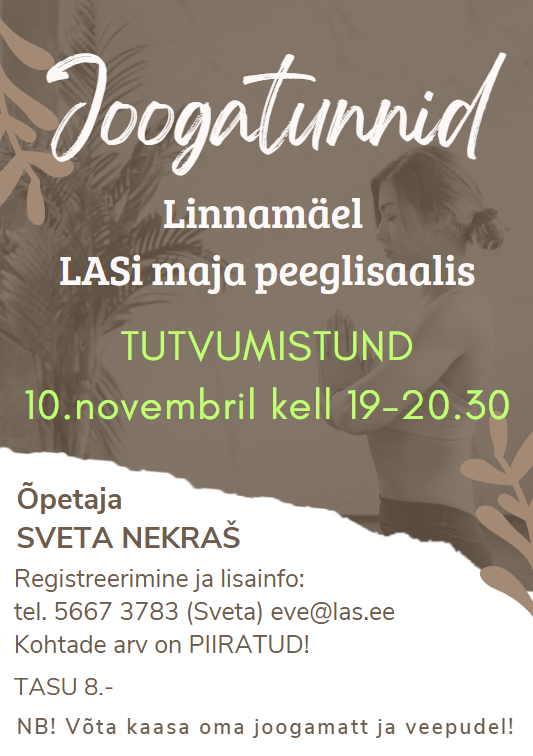 Sel aastal toimuvad joogatunnid veel viis korda: 17.11, 24.11, 1.12, 8.12, 15.12.