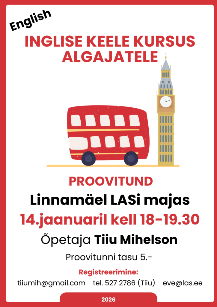 Linnamäel, LASi majas toimub 14. jaanuaril kell 18.00 “Inglise keele kursus algajatele” proovitund.