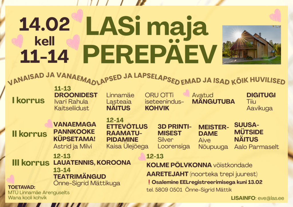 Igale vanusele, kõigile põlvkondadele – oled oodatud 14. veebruaril Linnamäele, LASi maja perepäevale, mis juhtumisi on sel korral ka sõbrapäev!