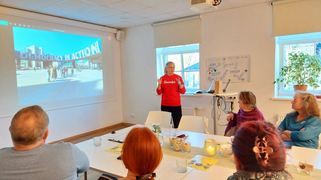 Wana kooli kohvikus valmistatud kauni ja maitsva tordi söömisega tähistasime MTÜ Linnamäe Arenguseltsi tegevuse kümnendat aastapäeva ning Kadi rääkis arenguseltsi loomise algusaegadest.