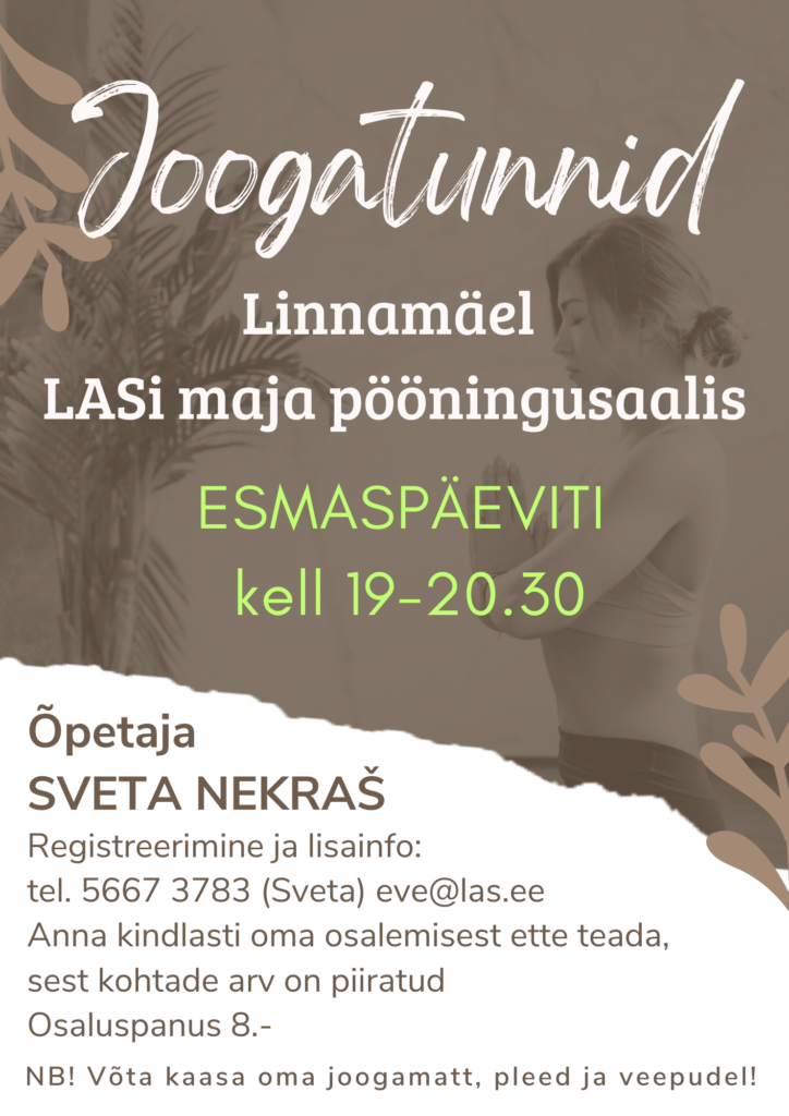 Võta julgesti ühendust (tel. 5667 9002 või eve@las.ee)