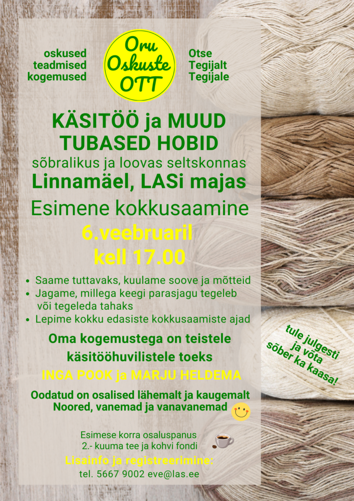 👉Tegusate Orukate Klubi tegemistes on oodatud osalema IGAS vanuses huvilised!